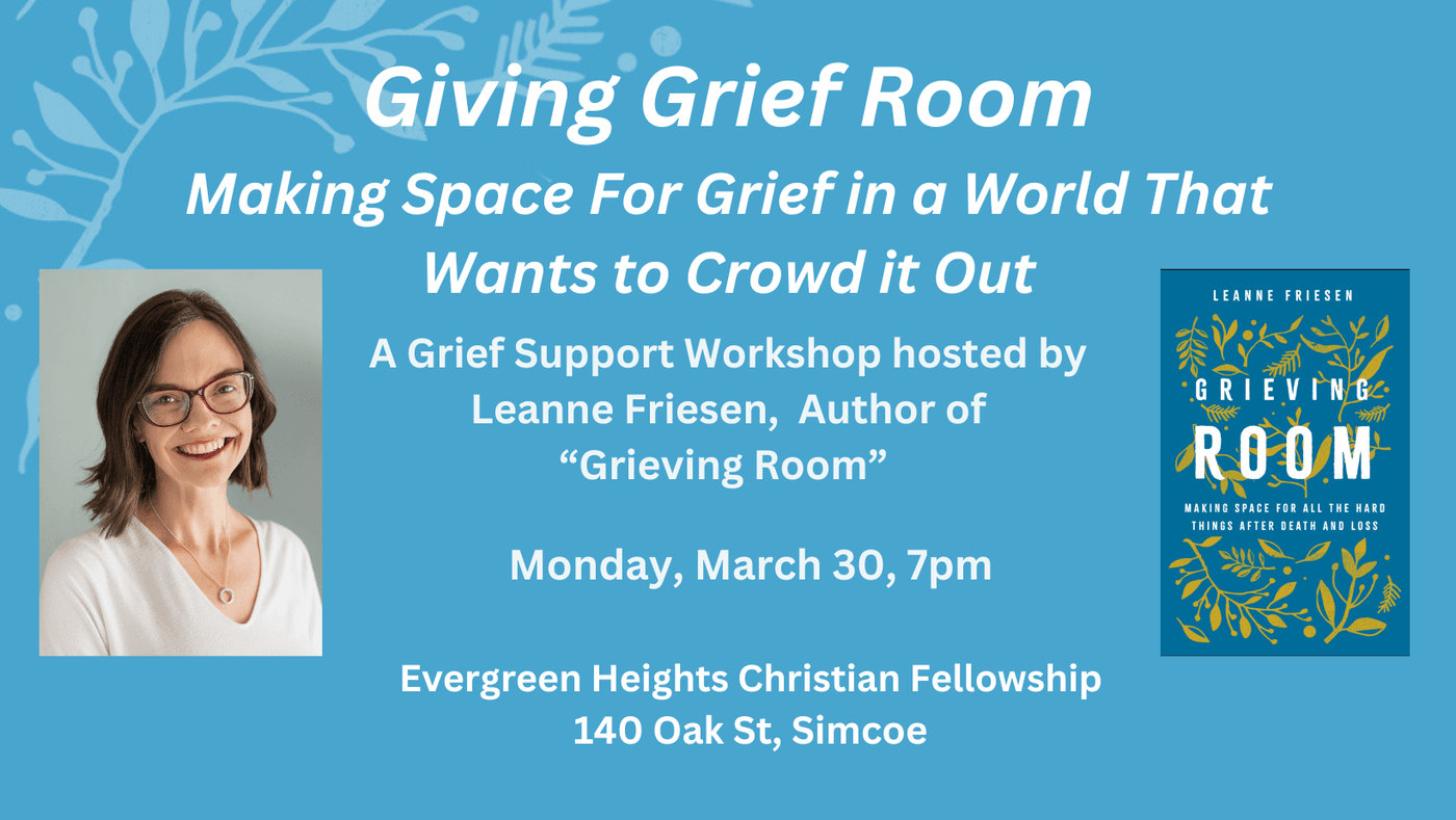 In this workshop, author, pastor and grief educator Leanne Friesen will share some grief basics that will help grievers navigate their loss, as well as those who want to support them.
